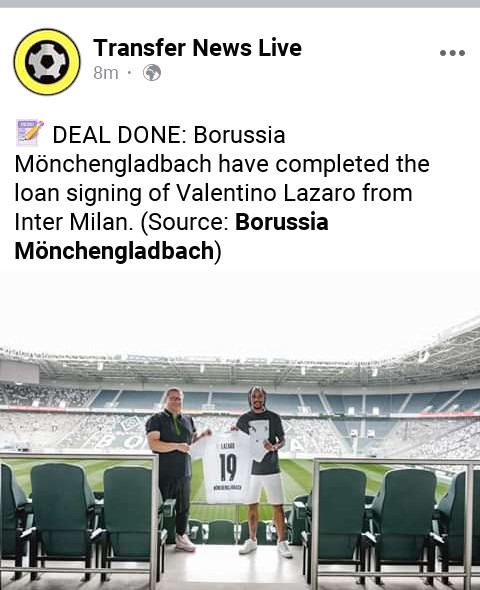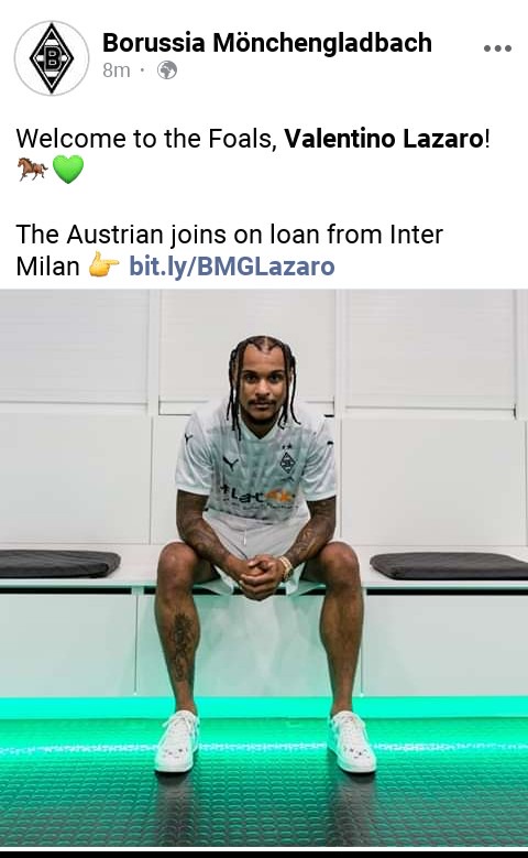 Borussia Monchengladbach Have Completed The Loan Signing Of Valentino Lazaro From Inter Milan Opera News